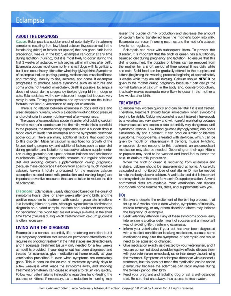 Preventative measures include ensuring that pregnant and nursing pets receive a balanced diet rich in calcium. Regular veterinary check-ups can help monitor calcium levels and prevent eclampsia. For more information on maintaining your pet's health, visit Pine Animal Hospital & Integrative Wellness Center.